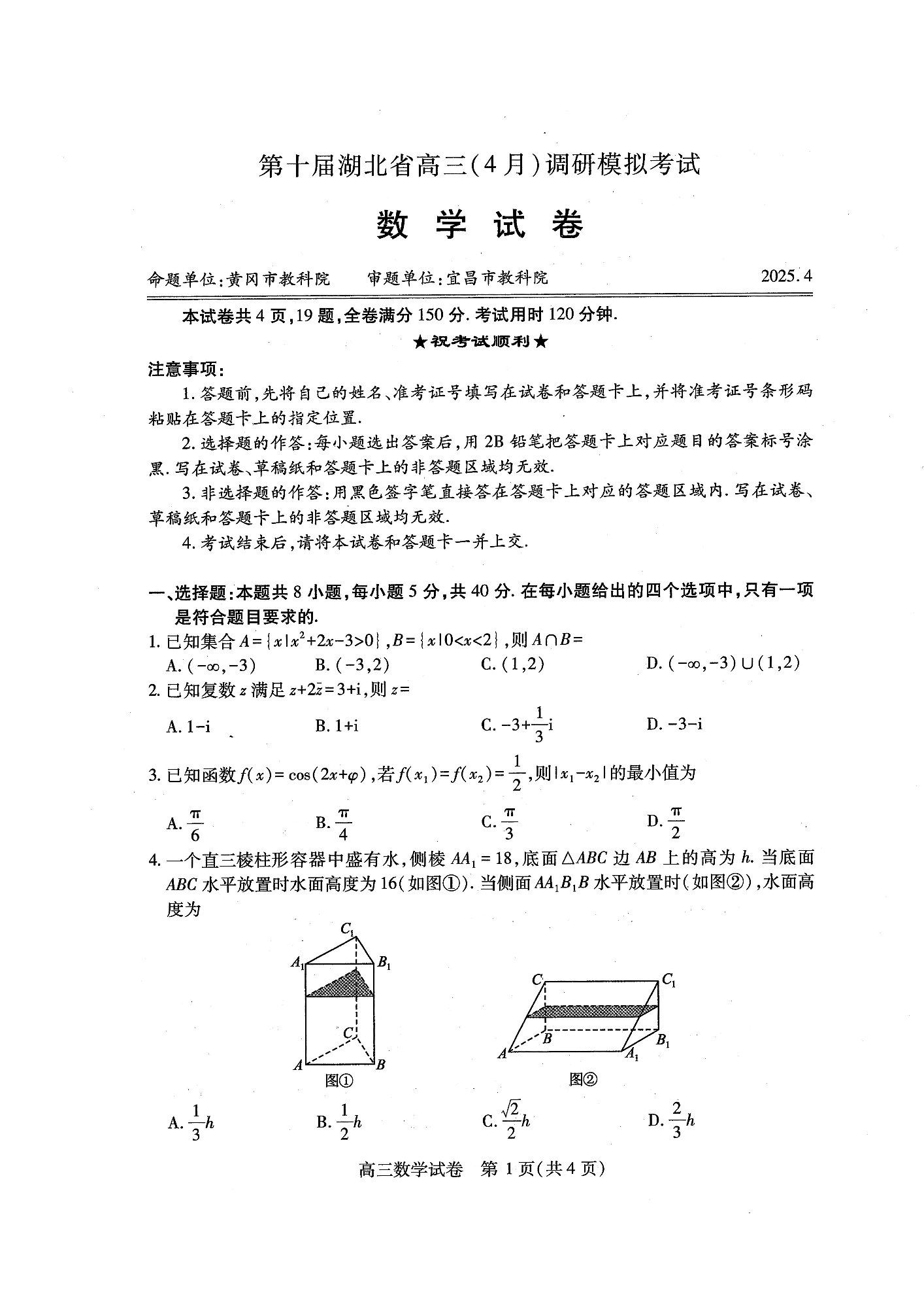 第十届湖北省高三(4月)调研模拟考试 数学.pdf