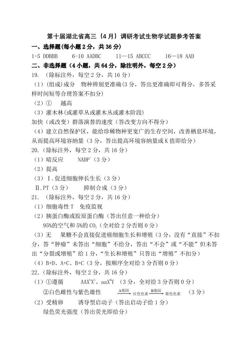 第十届湖北省高三(4月)调研模拟考试 生物答案.pdf