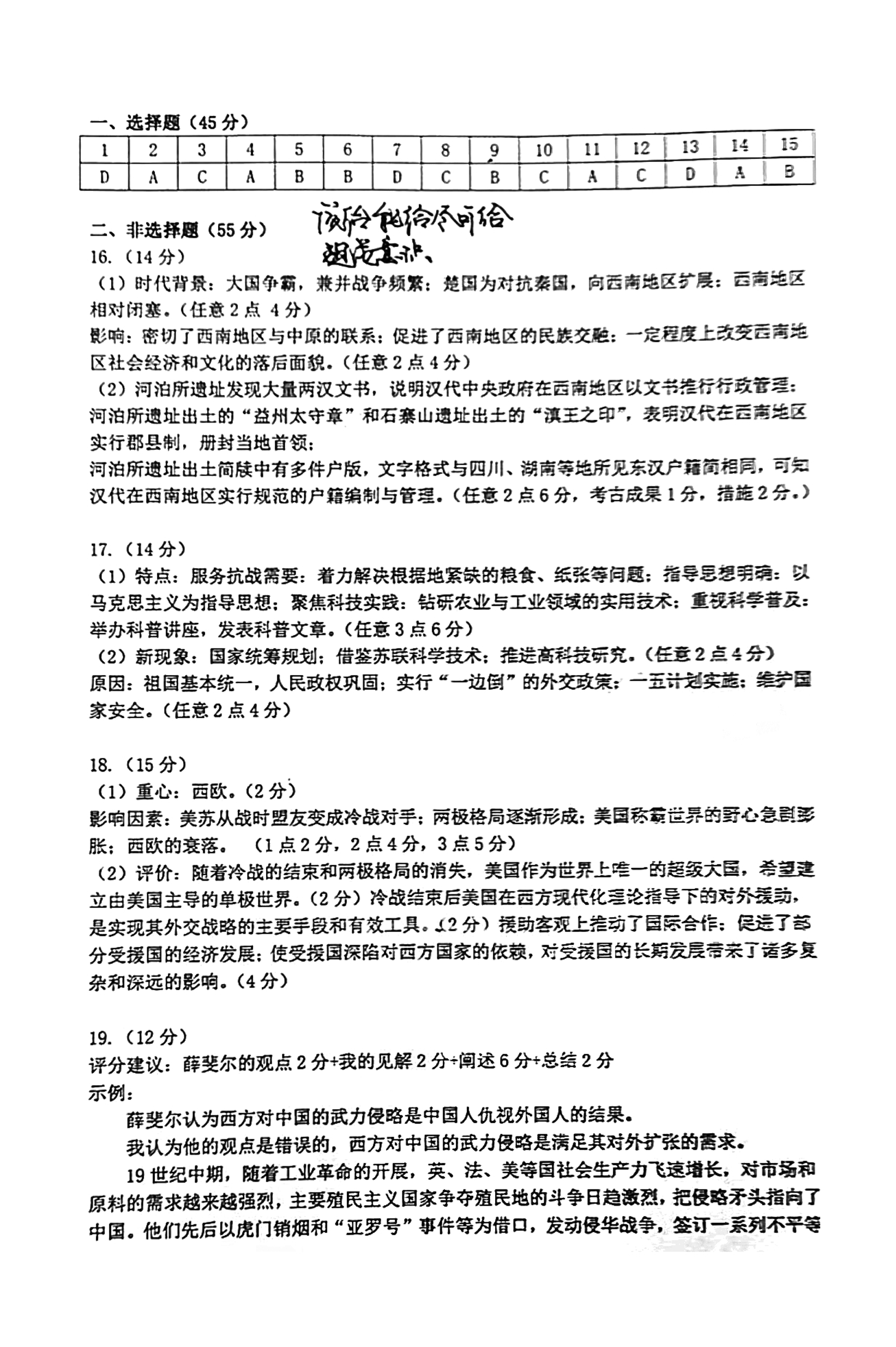 湖北省武汉市2025届高中毕业生四月调研考试 历史答案.pdf