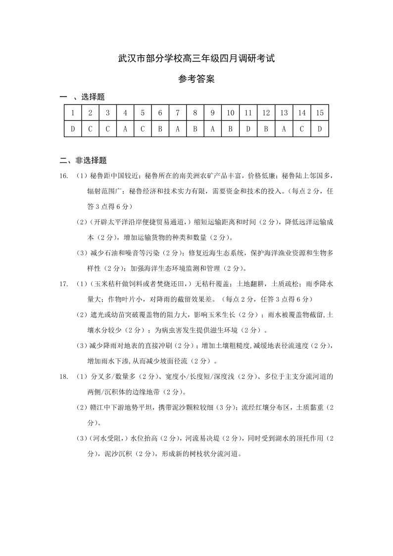 湖北省武汉市2025届高中毕业生四月调研考试 地理答案.pdf