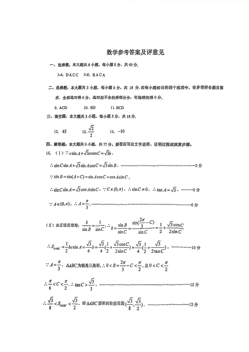 重庆市2025届主城五区学业质量调研抽测(第二次)数学答案.pdf