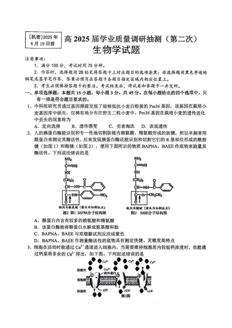 重庆市2025届主城五区学业质量调研抽测(第二次)生物.pdf