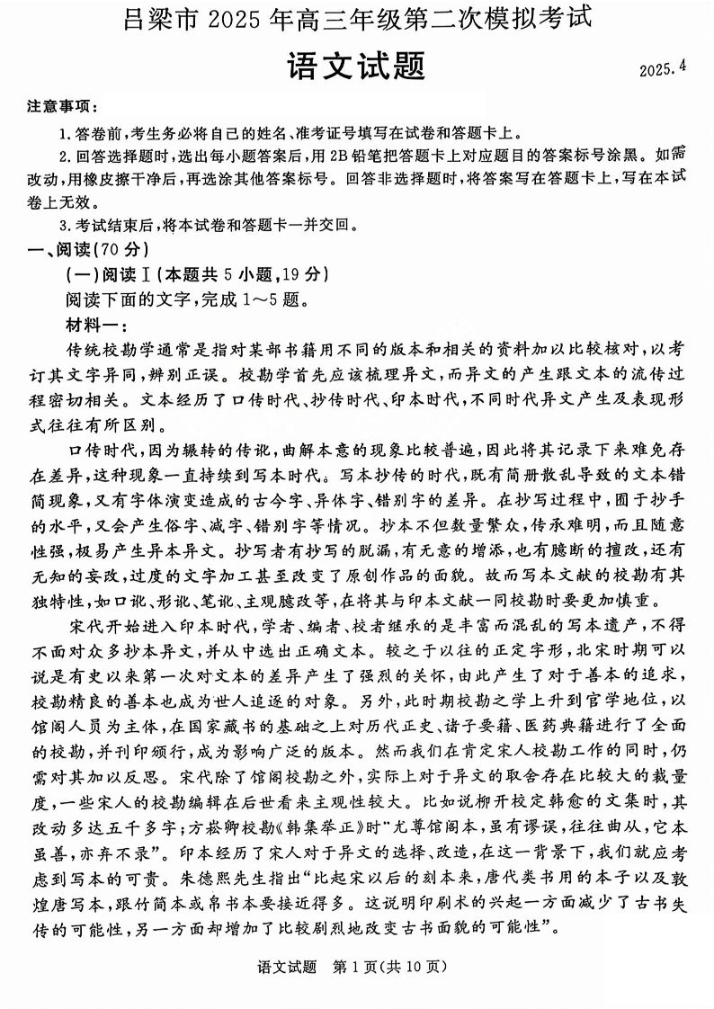 吕梁市2025年高三年级第二次模拟考试 语文.pdf