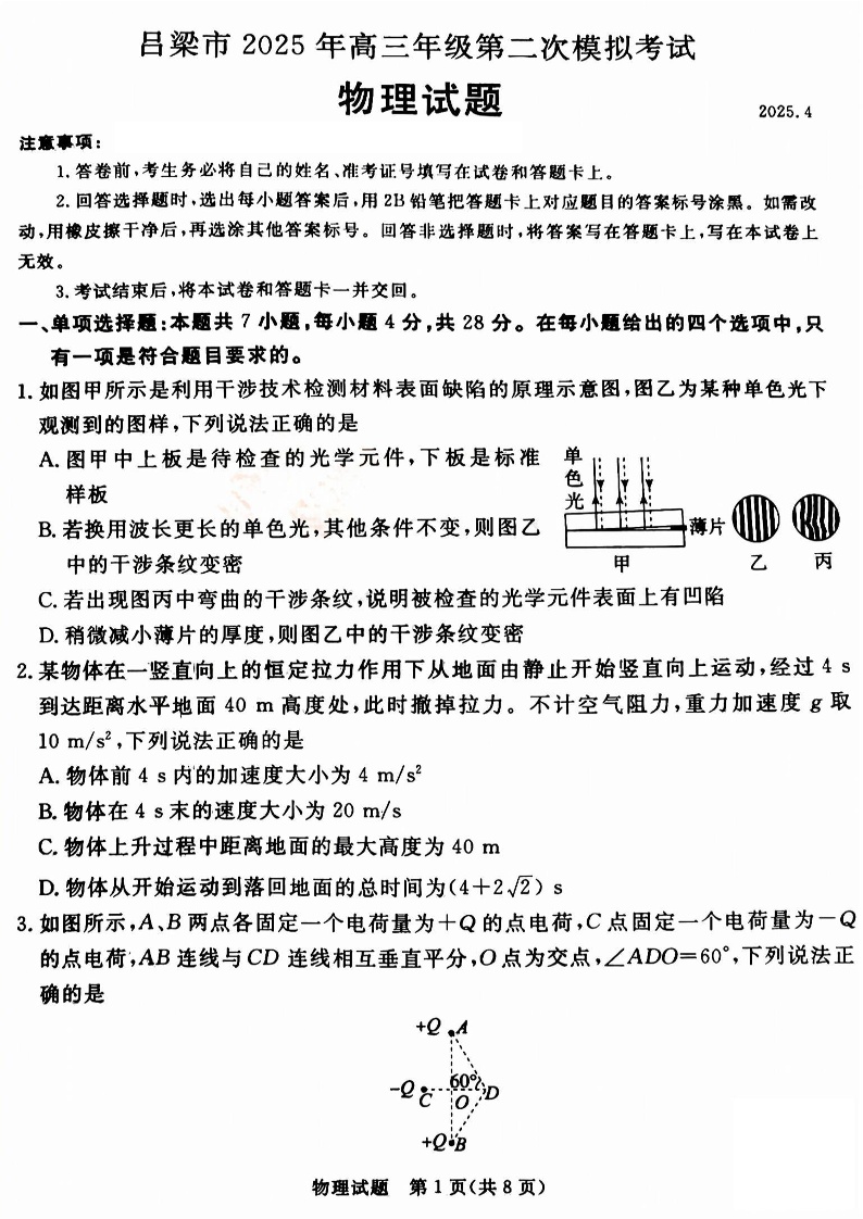 吕梁市2025年高三年级第二次模拟考试 物理.pdf