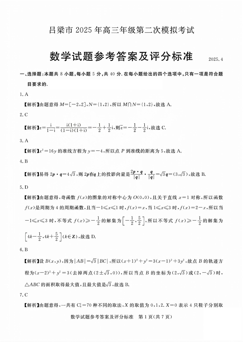 吕梁市2025年高三年级第二次模拟考试 数学答案.pdf