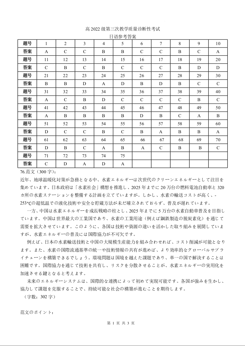 四川省泸州市高2022级第三次教学质量诊断性考试 日语答案.docx