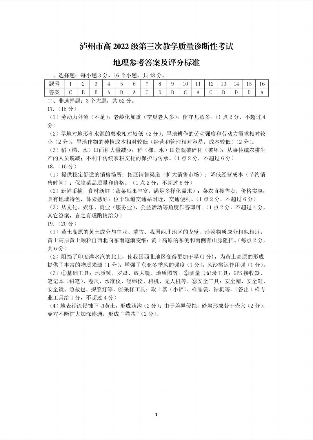 四川省泸州市高2022级第三次教学质量诊断性考试 地理答案.pdf