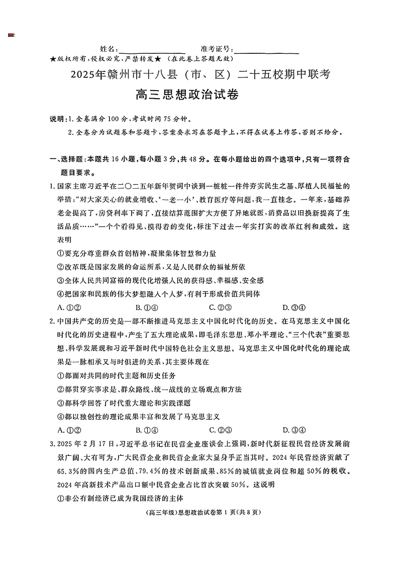 2025年赣州市十八县(市、区)二十五校高三期中联考 政治.pdf