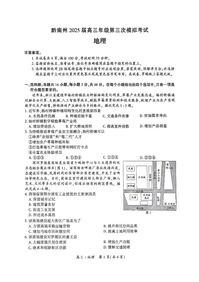 贵州省黔南州2025届高三年级第三次模拟考试 地理.pdf
