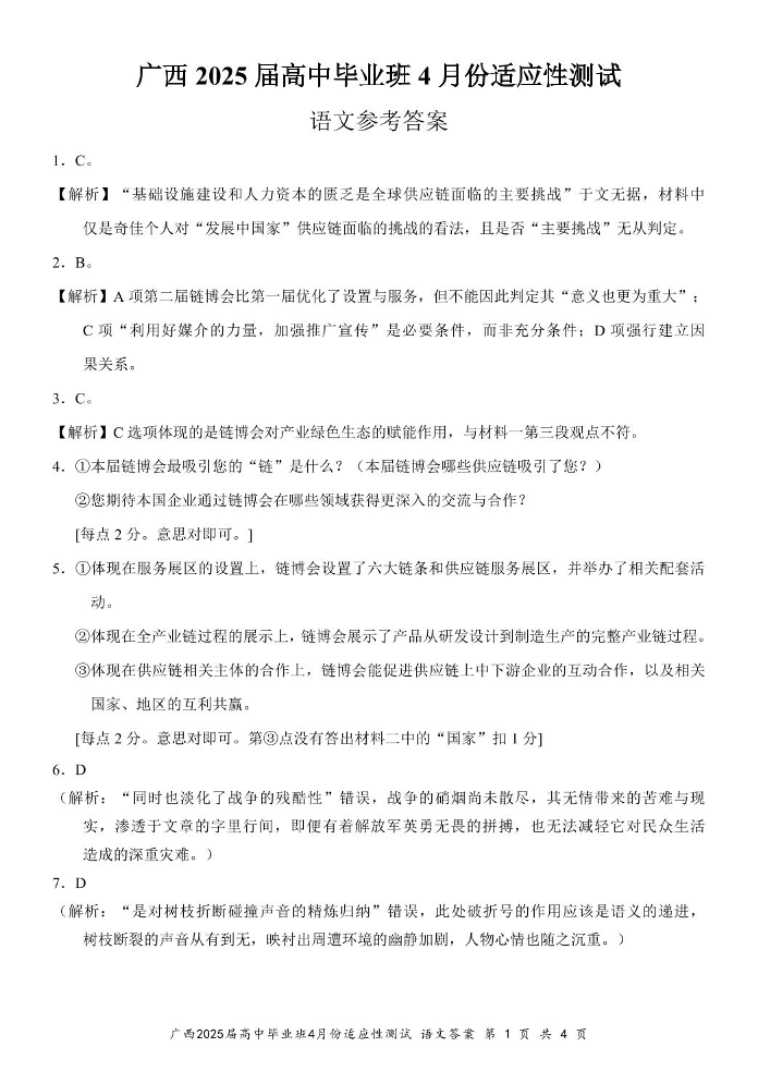 广西2025届高中毕业班4月适应性测试 语文答案.pdf