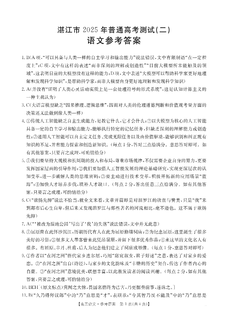 广东省湛江市2025年普通高考测试(二)语文答案.pdf