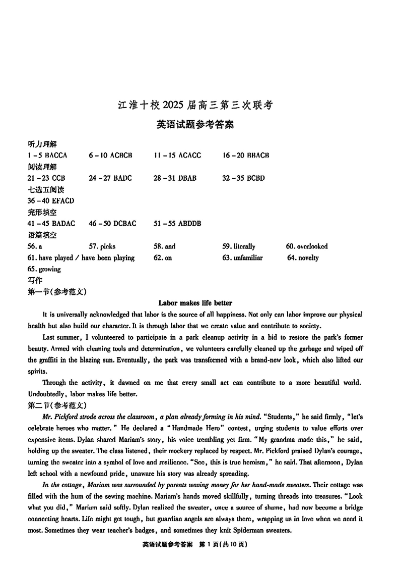 安徽省安庆市示范高中暨江淮十校2025届高三第三次联考 英语答案.pdf
