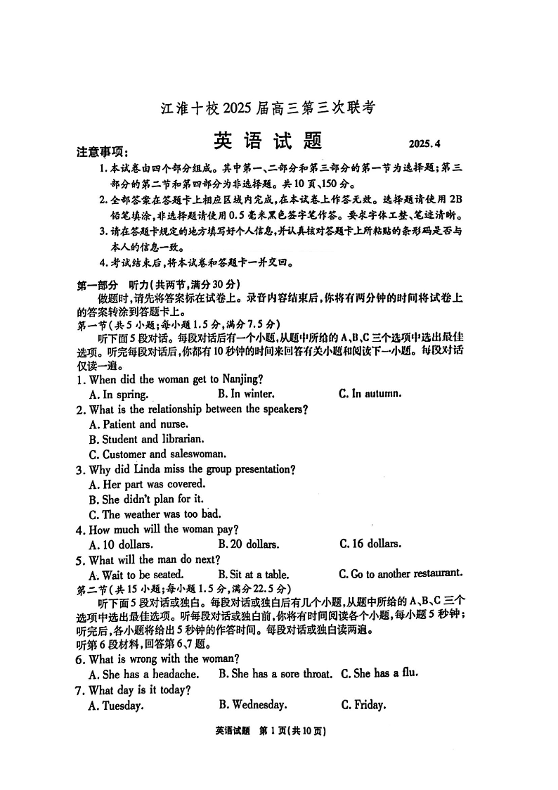 安徽省安庆市示范高中暨江淮十校2025届高三第三次联考 英语.pdf