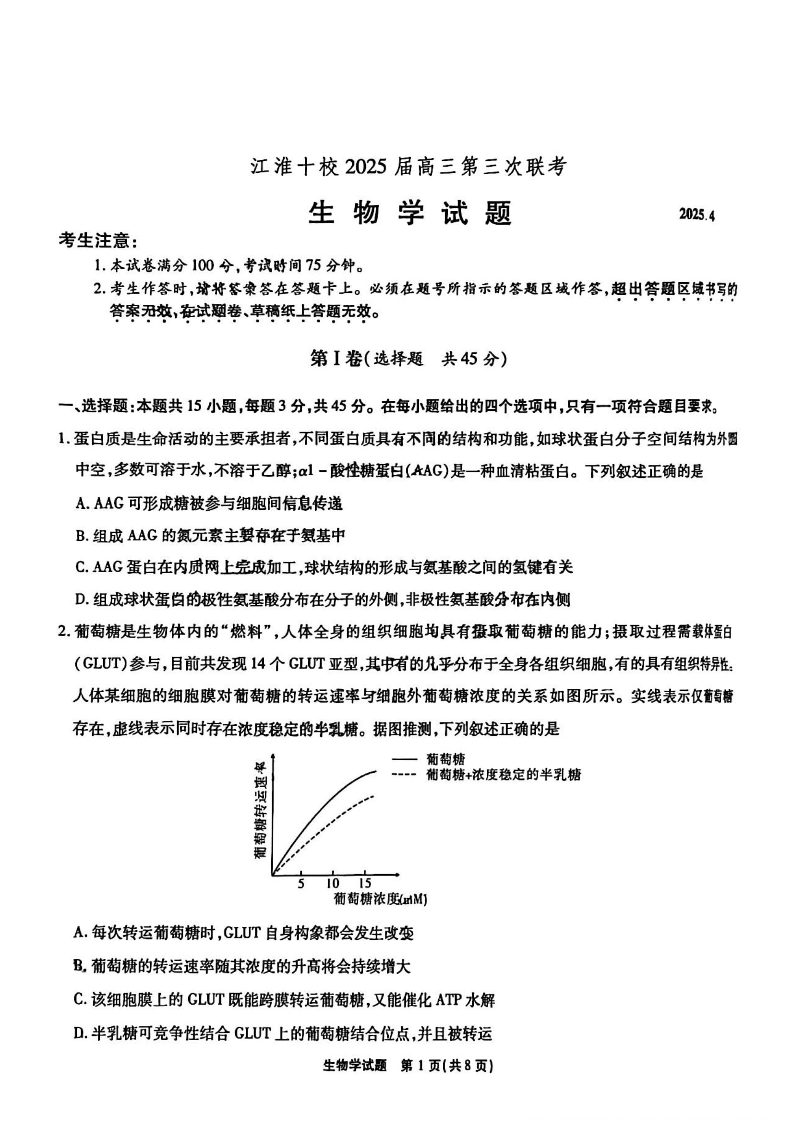 安徽省安庆市示范高中暨江淮十校2025届高三第三次联考 生物.pdf
