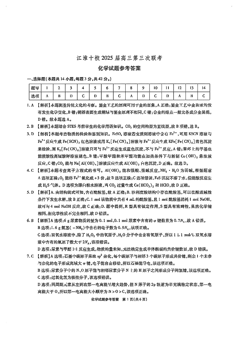 安徽省安庆市示范高中暨江淮十校2025届高三第三次联考 化学答案.pdf