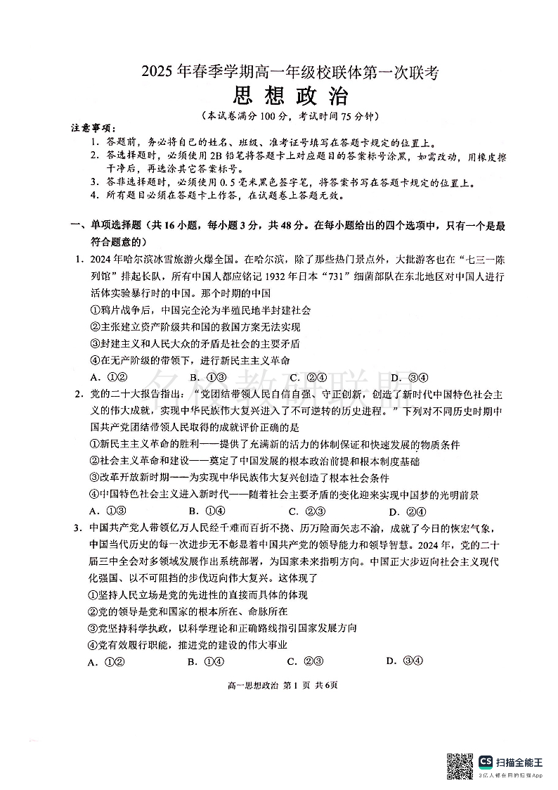 河池十校联体2025-04月考高一政治.pdf