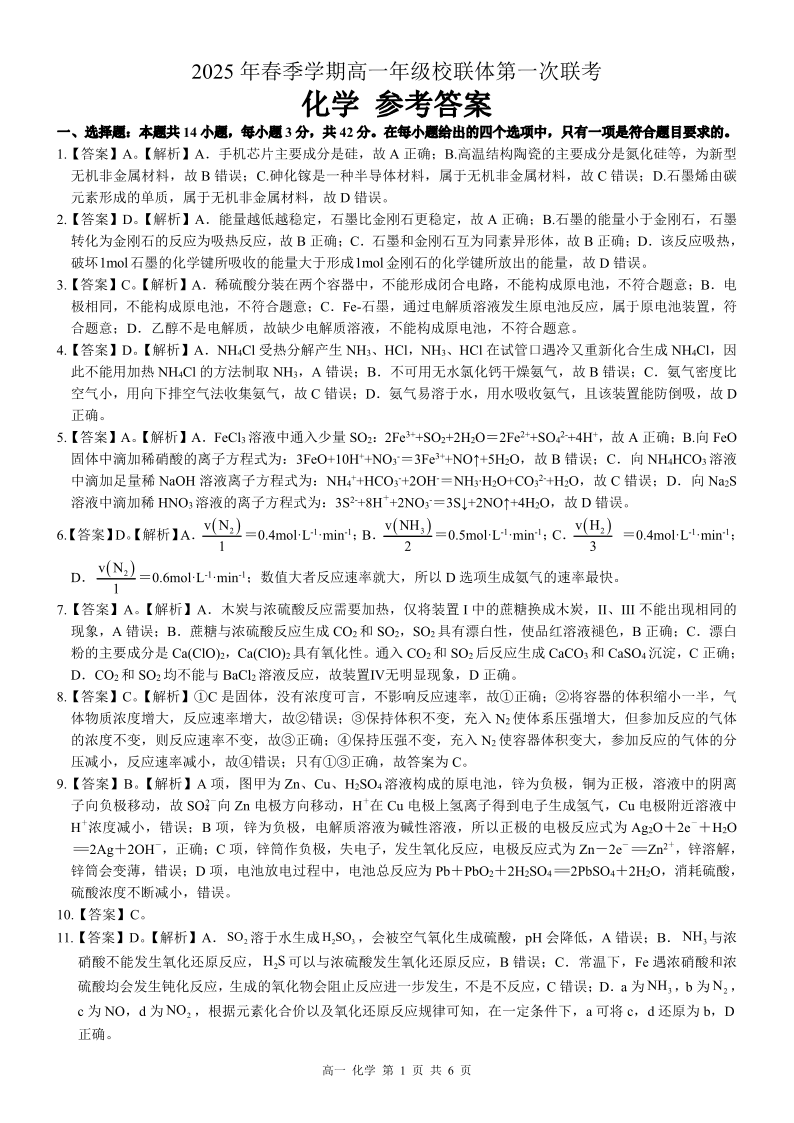 河池十校联体2025-04月考高一化学答案.pdf