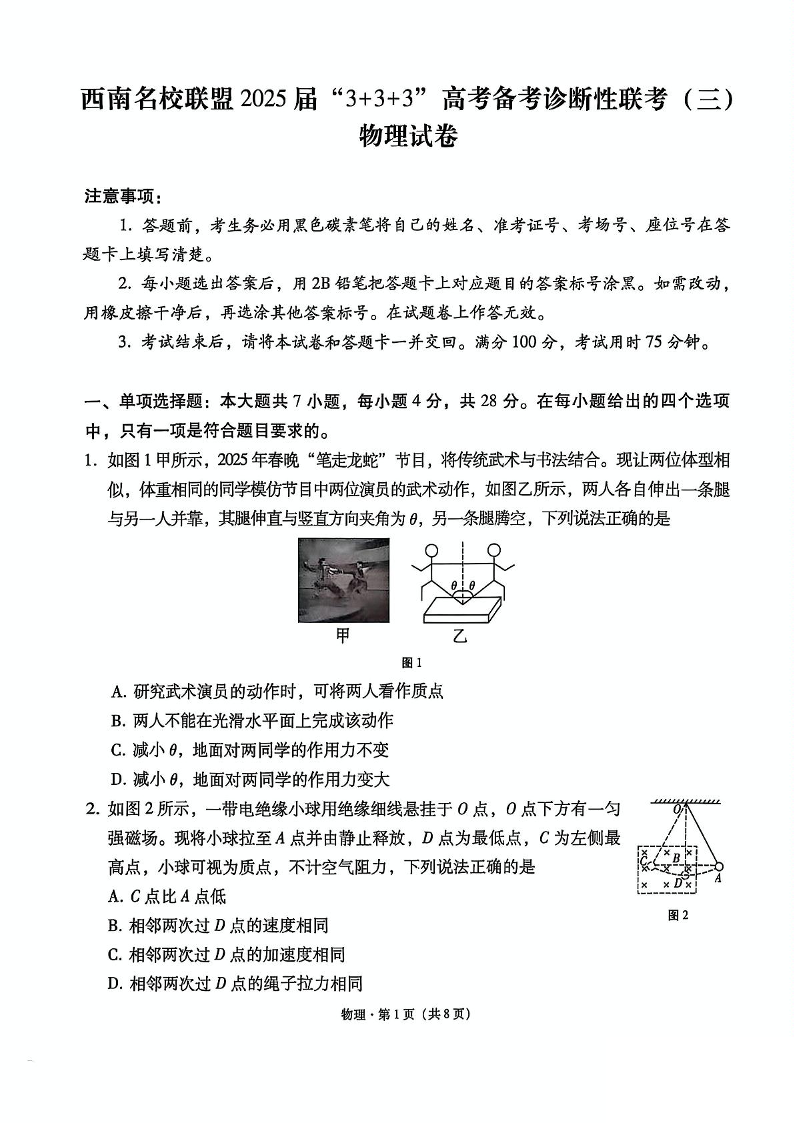 西南名校联盟2025届高三下学期“3+3+3”高考备考诊断性联考(三)物理.pdf