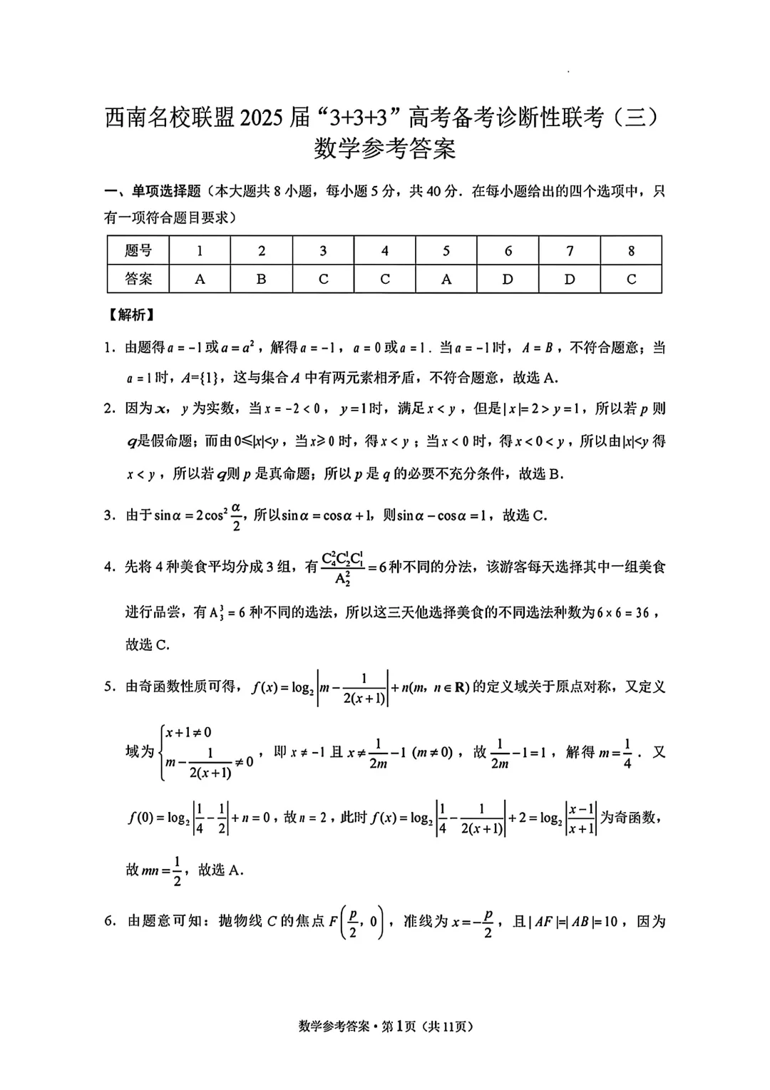 西南名校联盟2025届高三下学期“3+3+3”高考备考诊断性联考(三)数学答案.pdf