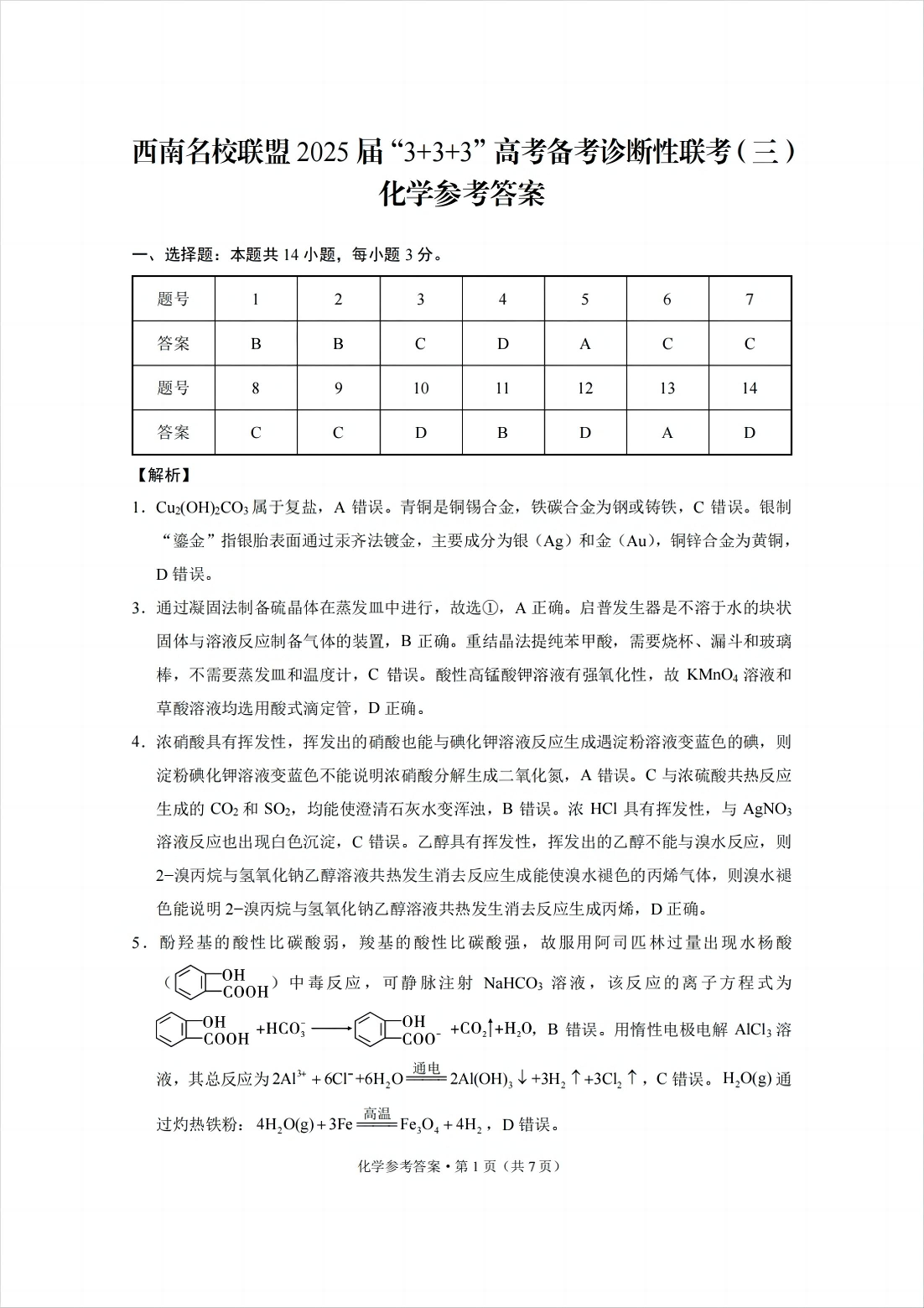 西南名校联盟2025届高三下学期“3+3+3”高考备考诊断性联考(三)化学答案.pdf