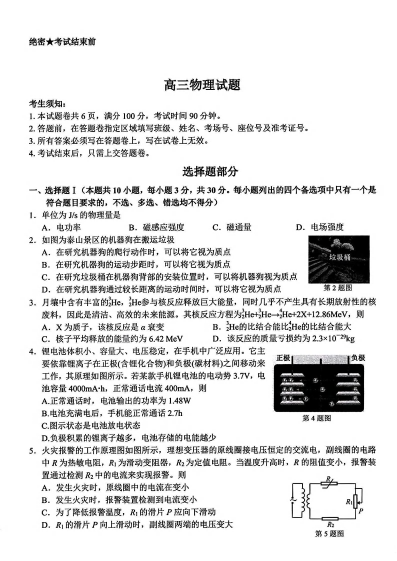 浙江北斗星盟2024-2025学年高三第二学期联考 物理.pdf