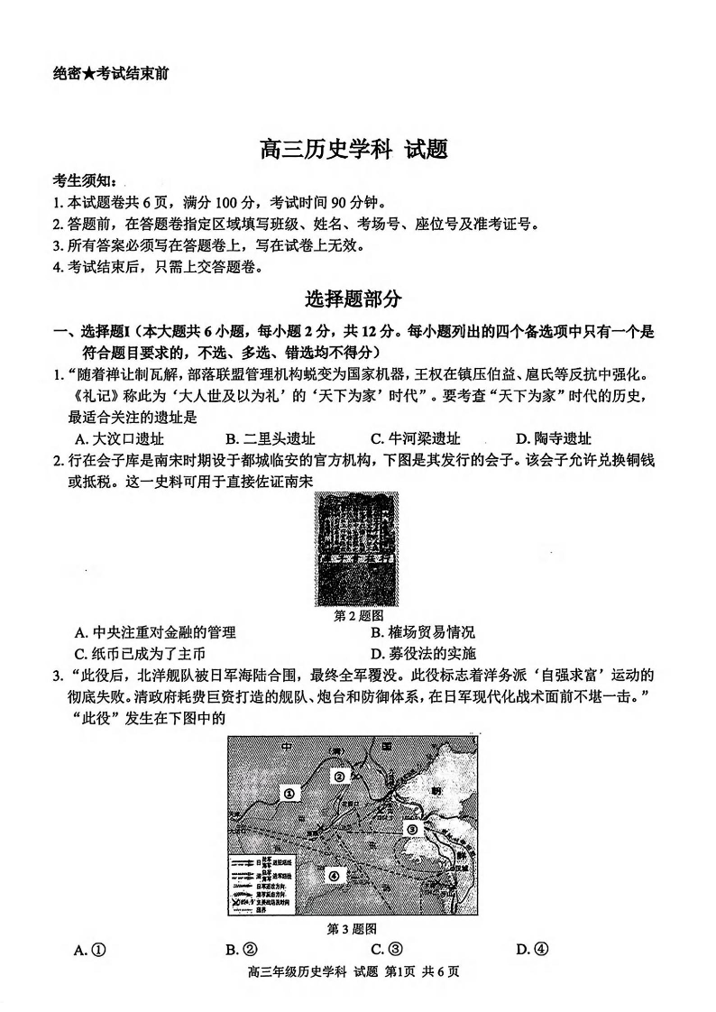 浙江北斗星盟2024-2025学年高三第二学期联考 历史.pdf