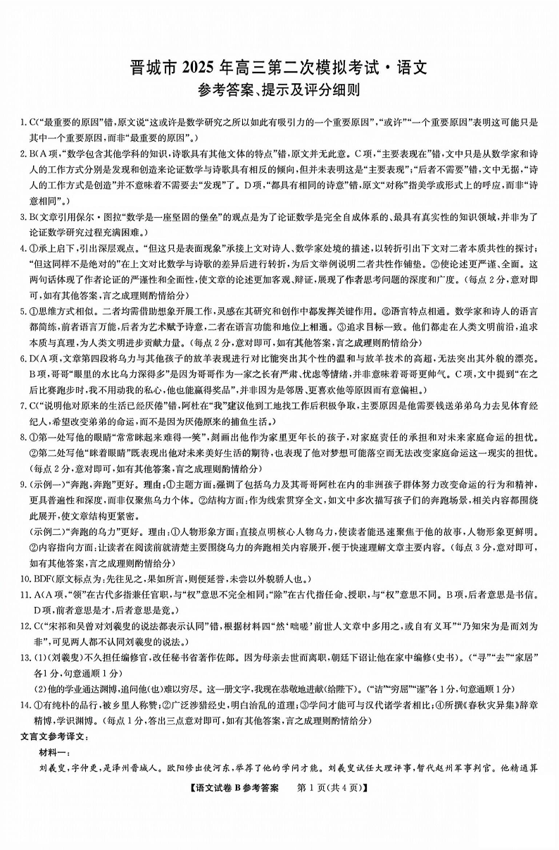 2025年晋城二模 语文答案.pdf