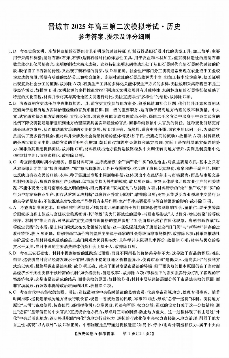 2025年晋城二模 历史答案.pdf
