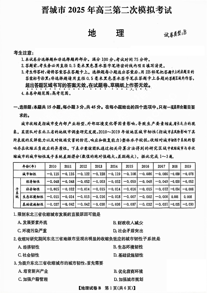 2025年晋城二模 地理.pdf