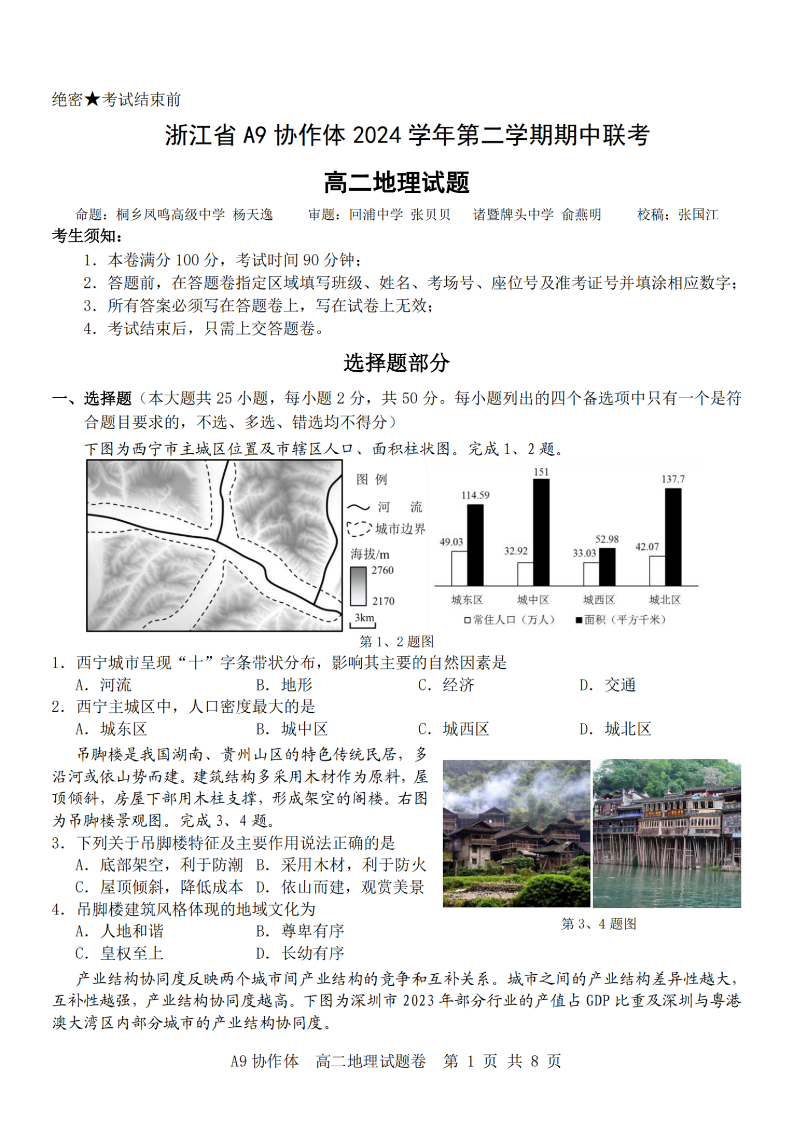 浙江省A9协作体2024学年高二第二学期期中联考 地理.pdf