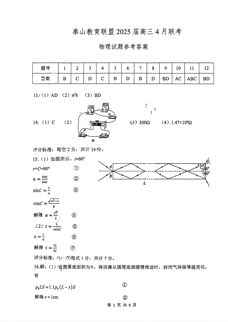 山东省泰山教育联盟2025届高三4月联考 物理答案.pdf