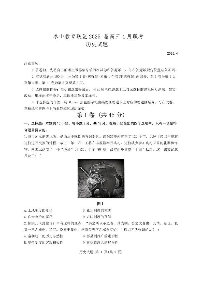 山东省泰山教育联盟2025届高三4月联考 历史.pdf