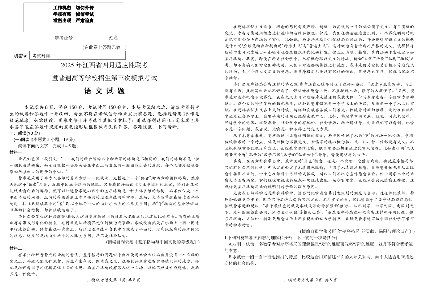 2025年江西省高三四月适应性联考(三模)语文.pdf