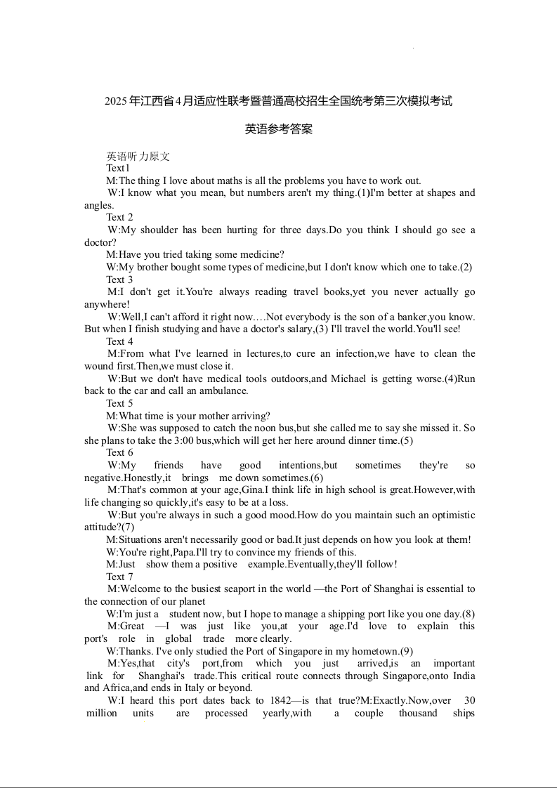 2025年江西省高三四月适应性联考(三模)英语答案.docx
