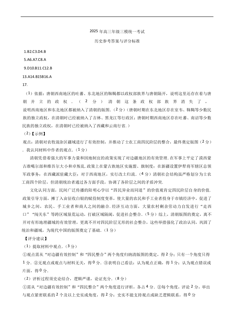 2025年江西省高三四月适应性联考(三模)历史答案.docx