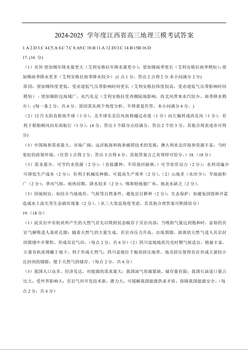 2025年江西省高三四月适应性联考(三模)地理答案.docx