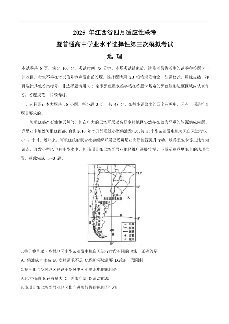 2025年江西省高三四月适应性联考(三模)地理.docx