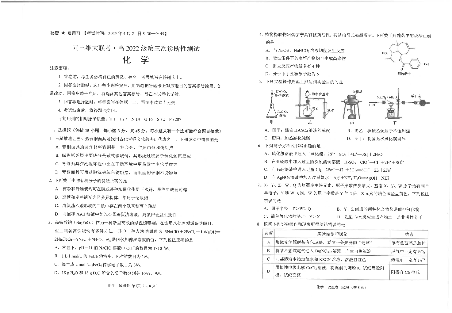 四川省元三维大联考·高2022级第三次诊断性测试 化学.pdf
