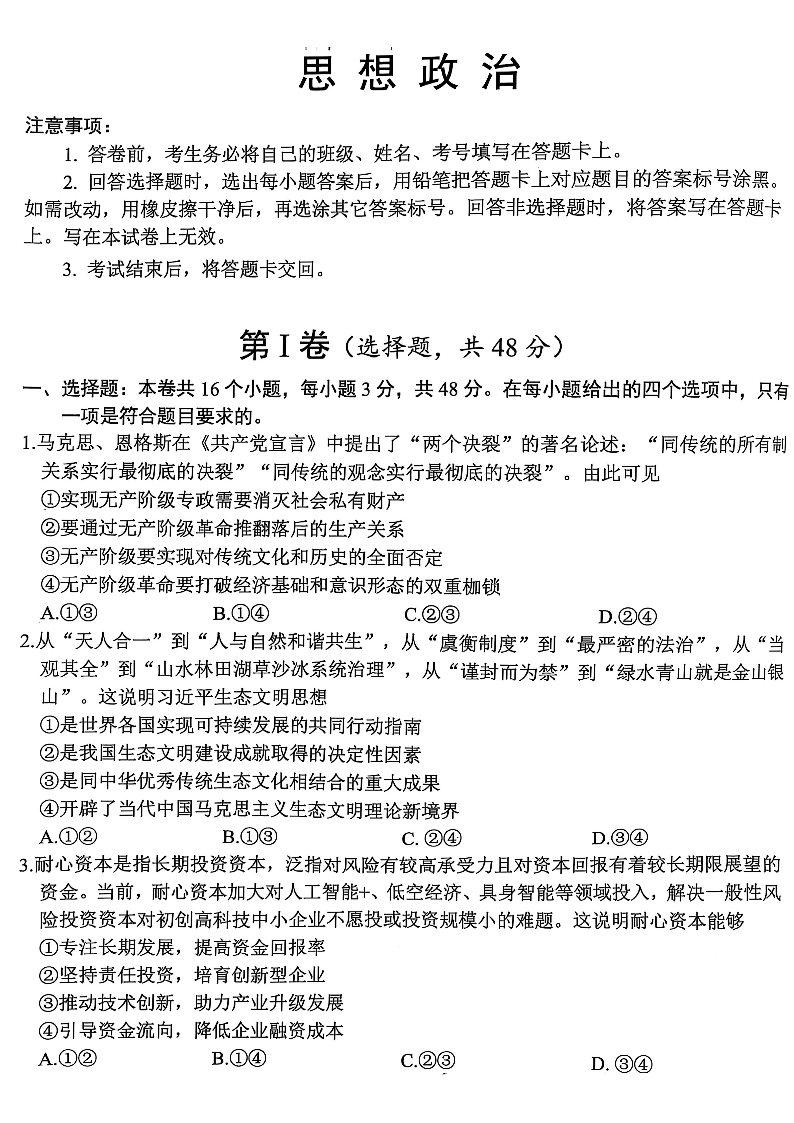 四川省绵阳市高中2022级第三次诊断性考试 政治.pdf