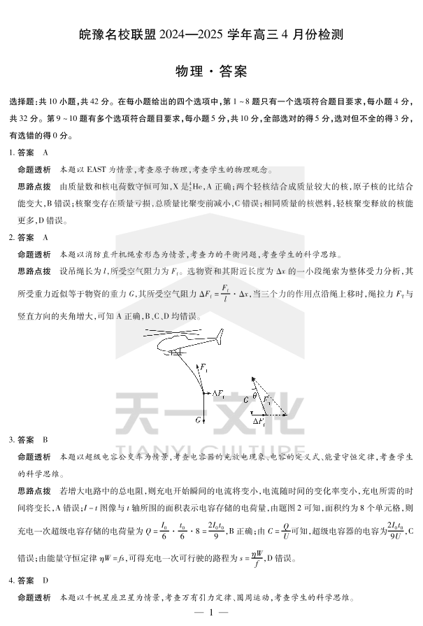 皖豫名校联盟2024-2025学年高三4月份检测 物理答案.pdf