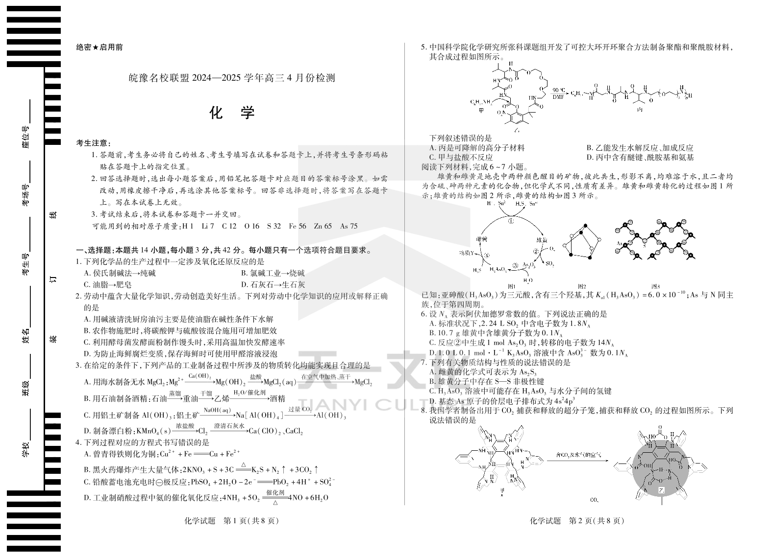 皖豫名校联盟2024-2025学年高三4月份检测 化学.pdf