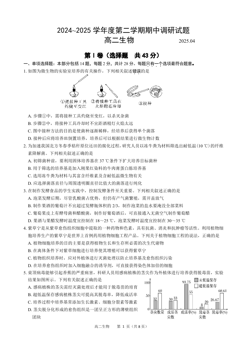 江苏扬州市邗江区2024-2025学年高二下学期期中考试 生物(含答案).pdf