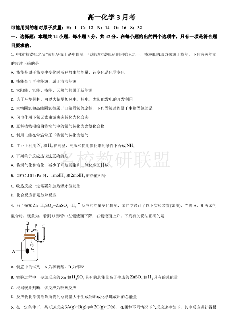 吉林省梅河口市第五中学2024-2025学年高一下学期3月月考试题 化学(含答案).pdf
