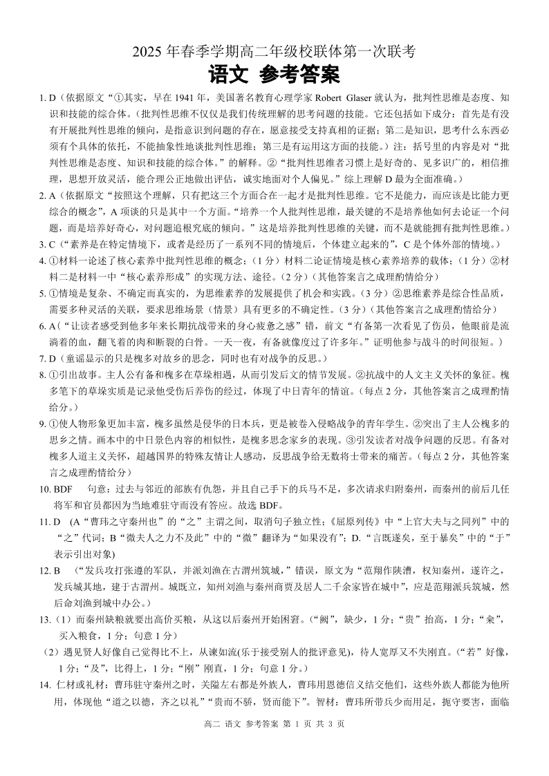 河池十校联体2025年4月高二联考 语文答案.pdf