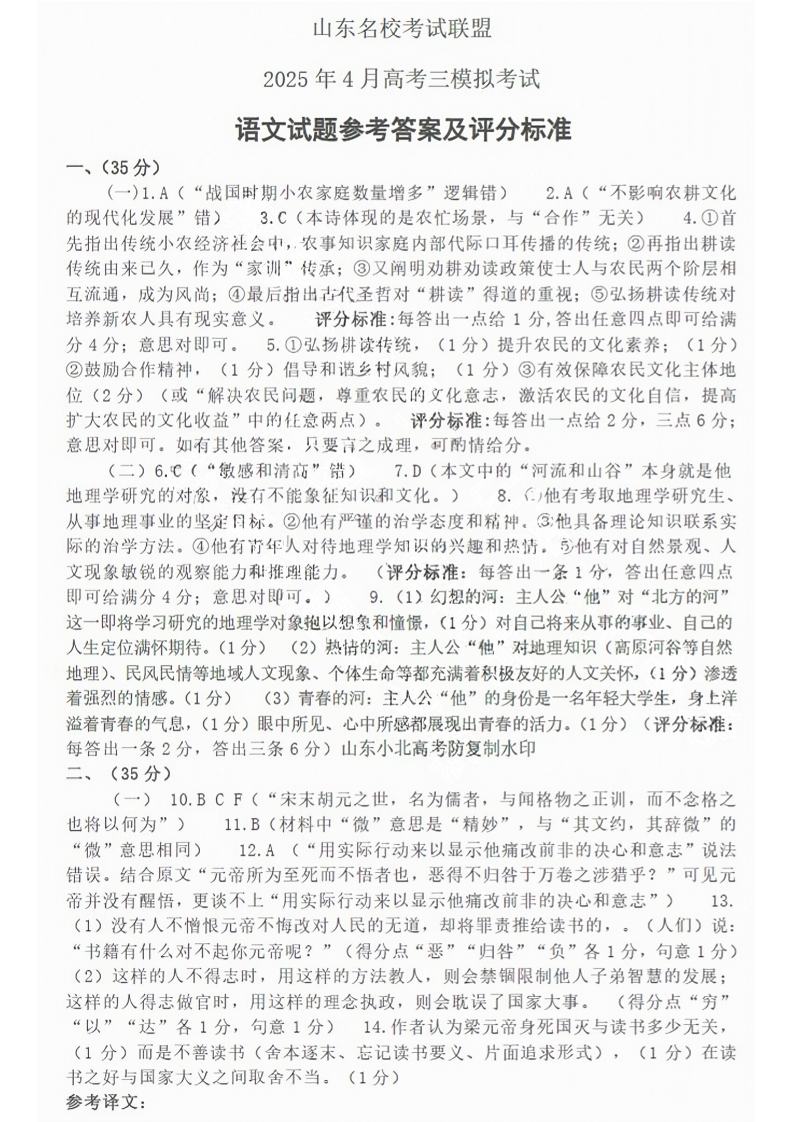 山东名校考试联盟2025年4月高考模拟考试 语文答案.pdf