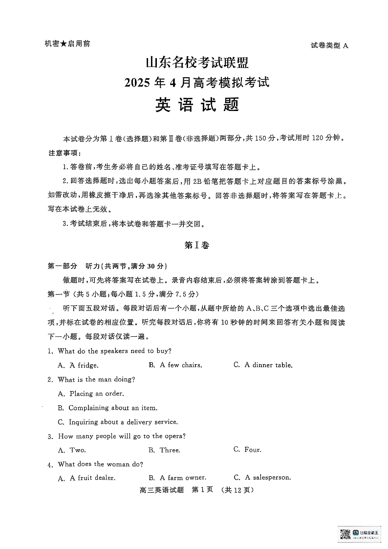 山东名校考试联盟2025年4月高考模拟考试 英语.pdf