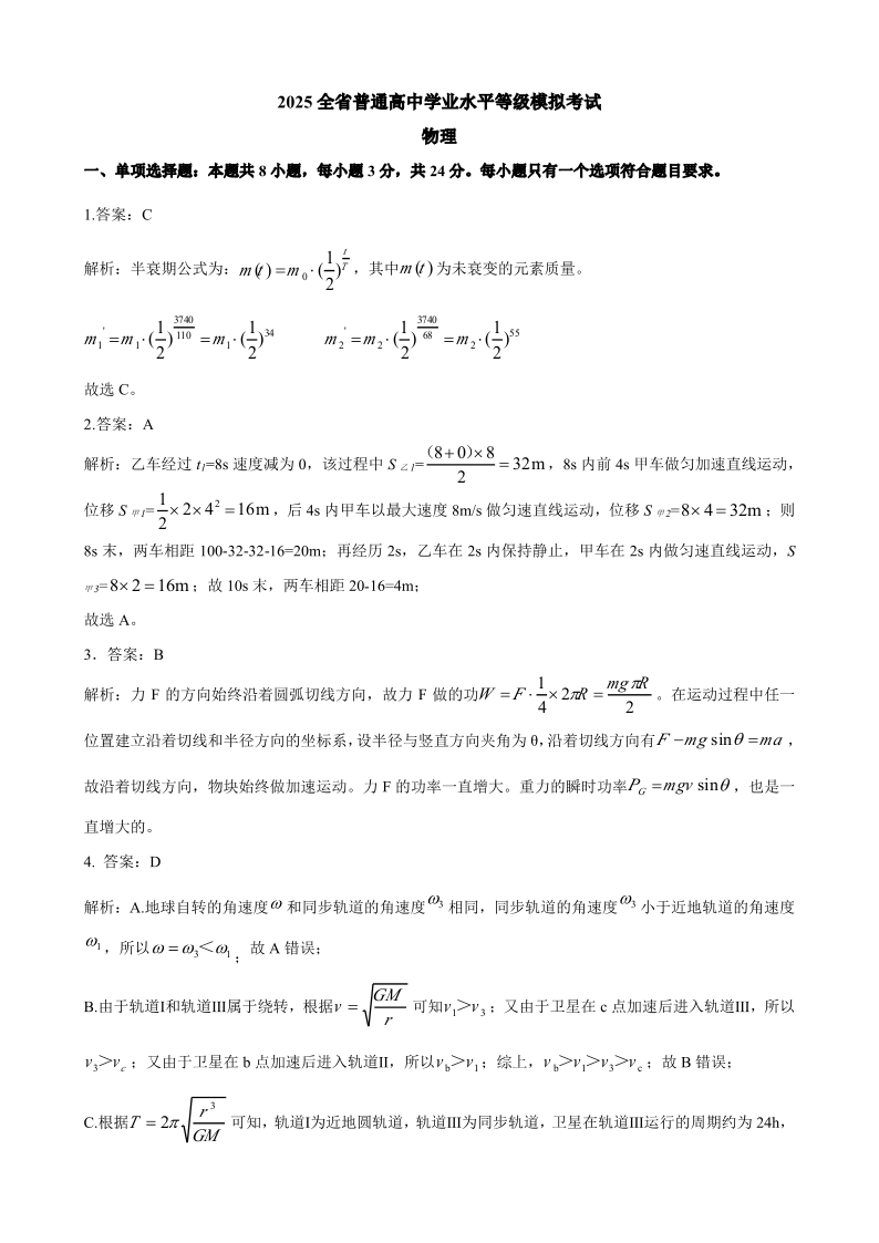 山东名校考试联盟2025年4月高考模拟考试 物理答案.pdf