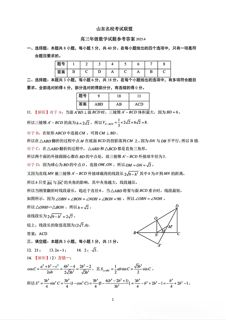 山东名校考试联盟2025年4月高考模拟考试 数学答案.pdf