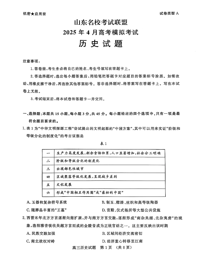 山东名校考试联盟2025年4月高考模拟考试 历史.pdf