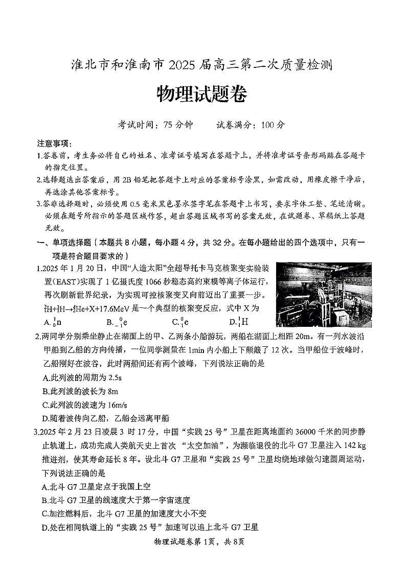 安徽省淮北市和淮南市2025届高三第二次质量检测 物理.pdf